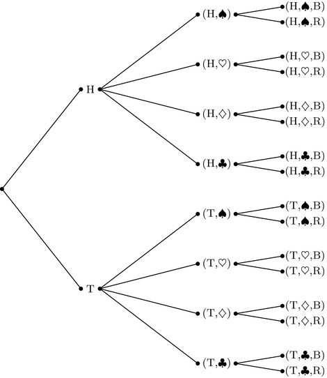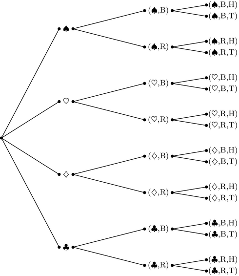 $\text{Suit} \times \text{Color} \times \text{Flip}$ below: